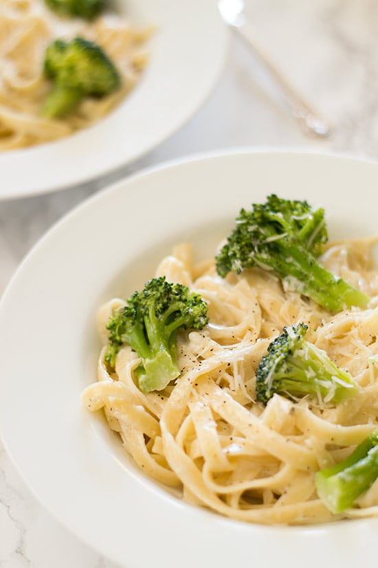 Oh and did I mention it’s delicious too? Broccoli and Alfredo were made for each other and this particular Alfredo sauce is fantastic. It’s slightly garlicky, cheesy, and just the perfect level of not-too-rich.